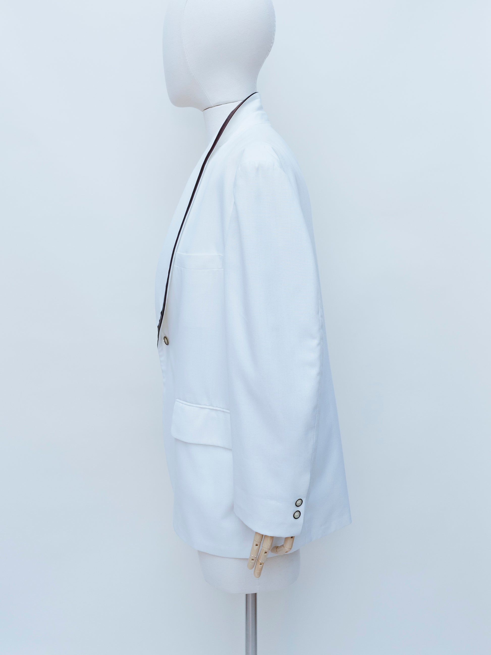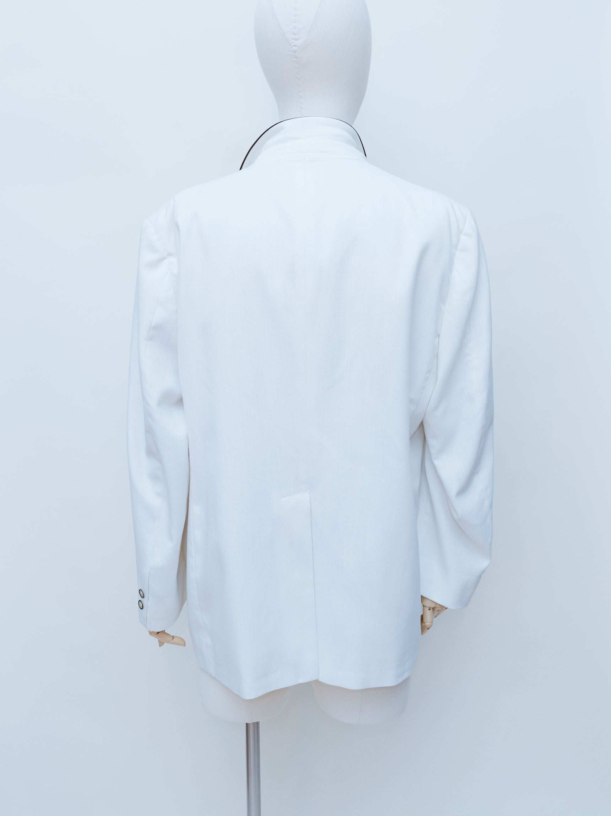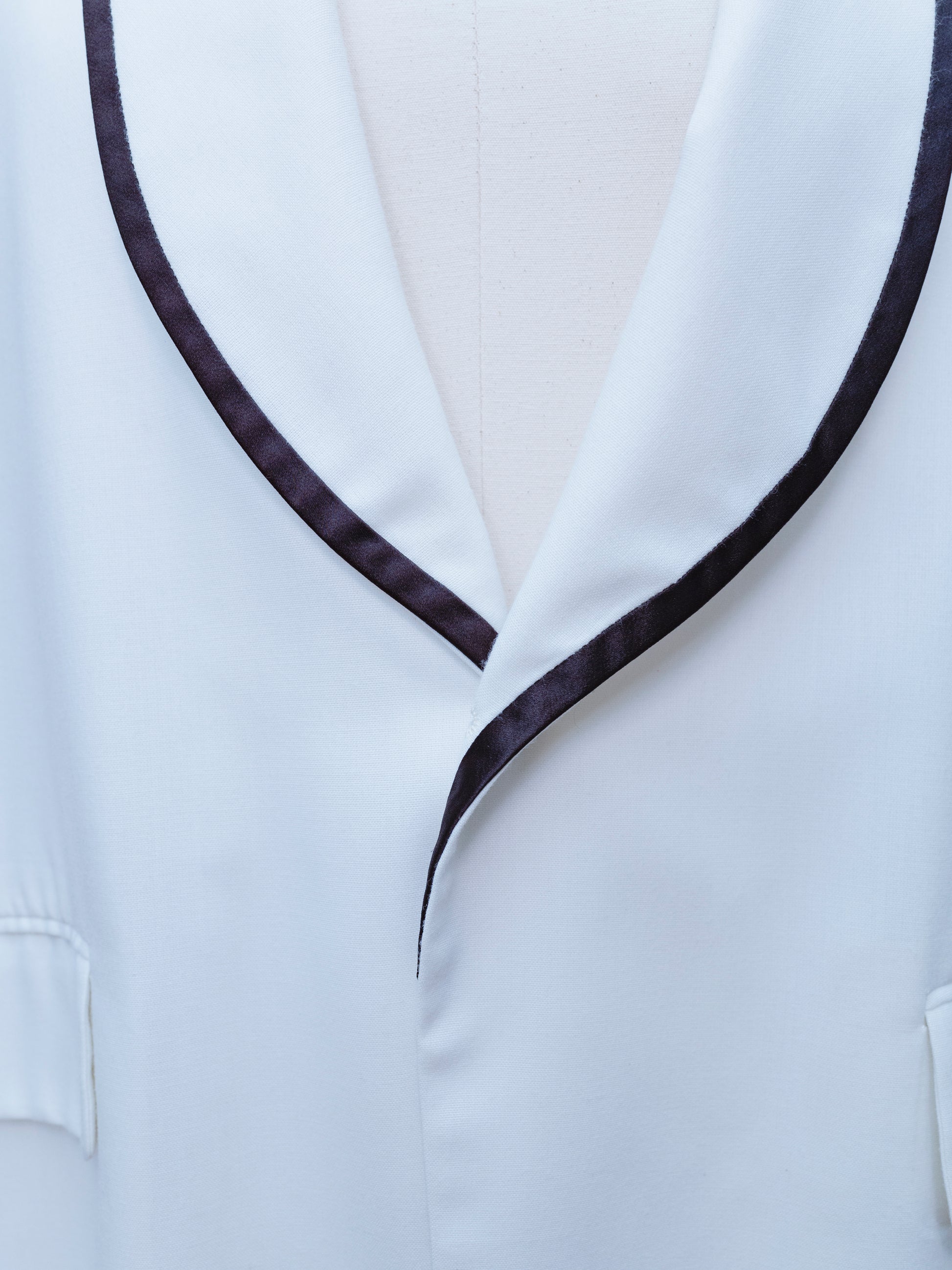 The smoking jacket design is an iconic hallmark of 70s fashion. Meant to serve as a more casual alternative to the tuxedo, jackets like these were intended specifically for tobacco smoking. While they originated in style in the mid 1800s, they were brought back in the 70s to reflect the elegance and sophistication of the time. The lack of a tag on this piece suggests it was custom made.