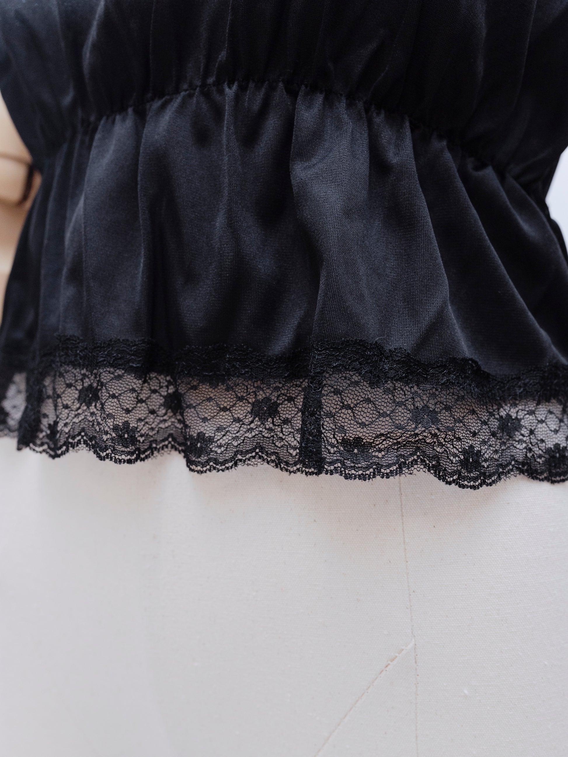 This black lace top flows effortlessly with a gentle drape, cinching at the waist to highlight your silhouette in all the right ways. This top brings a flirty charm to your wardrobe routine while keeping comfort front and center.