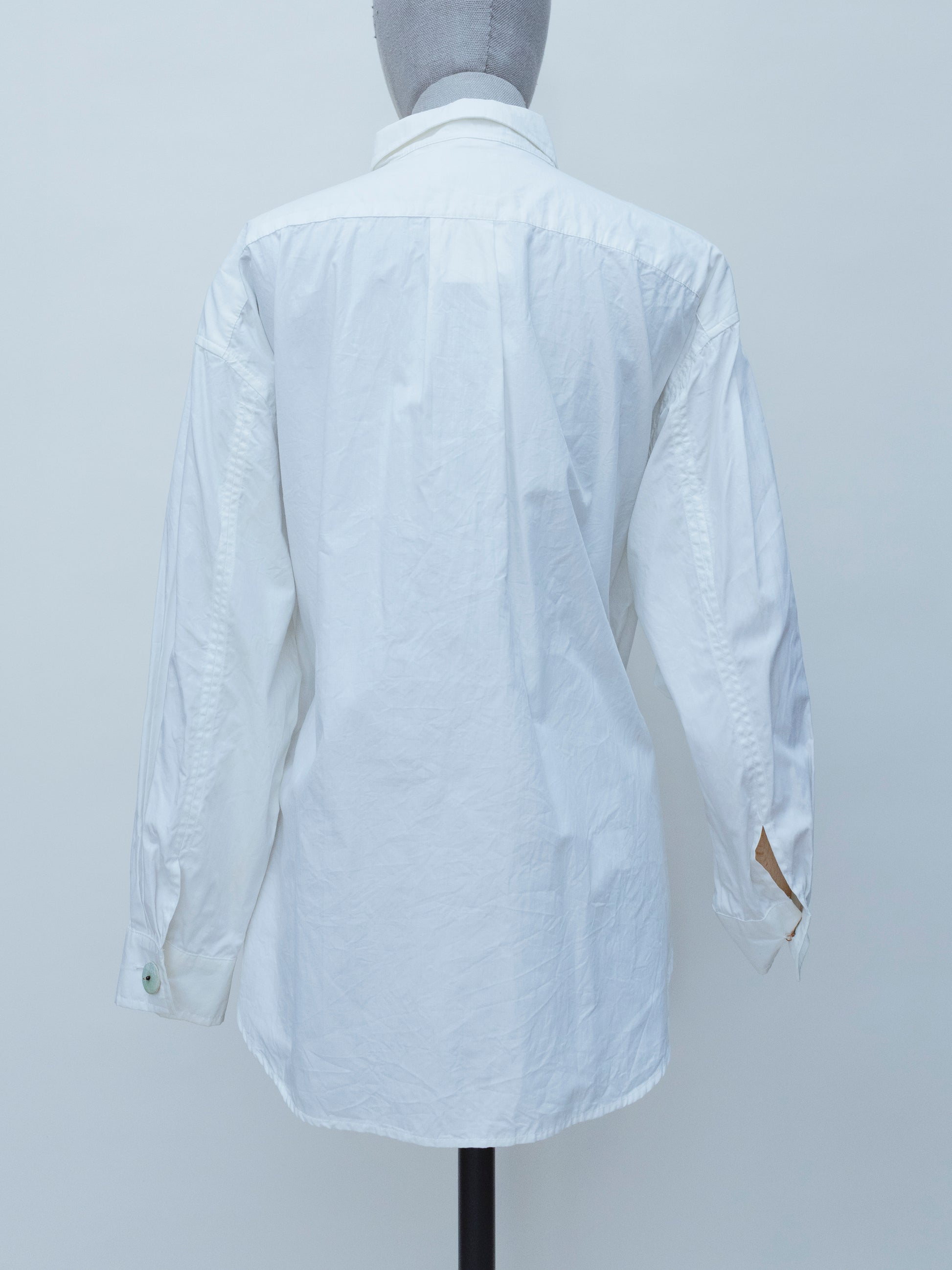 Hand made buttons with copper wire & bead embellishment. 9 buttons down the front of the shirt. Cuffs each have 1 button.