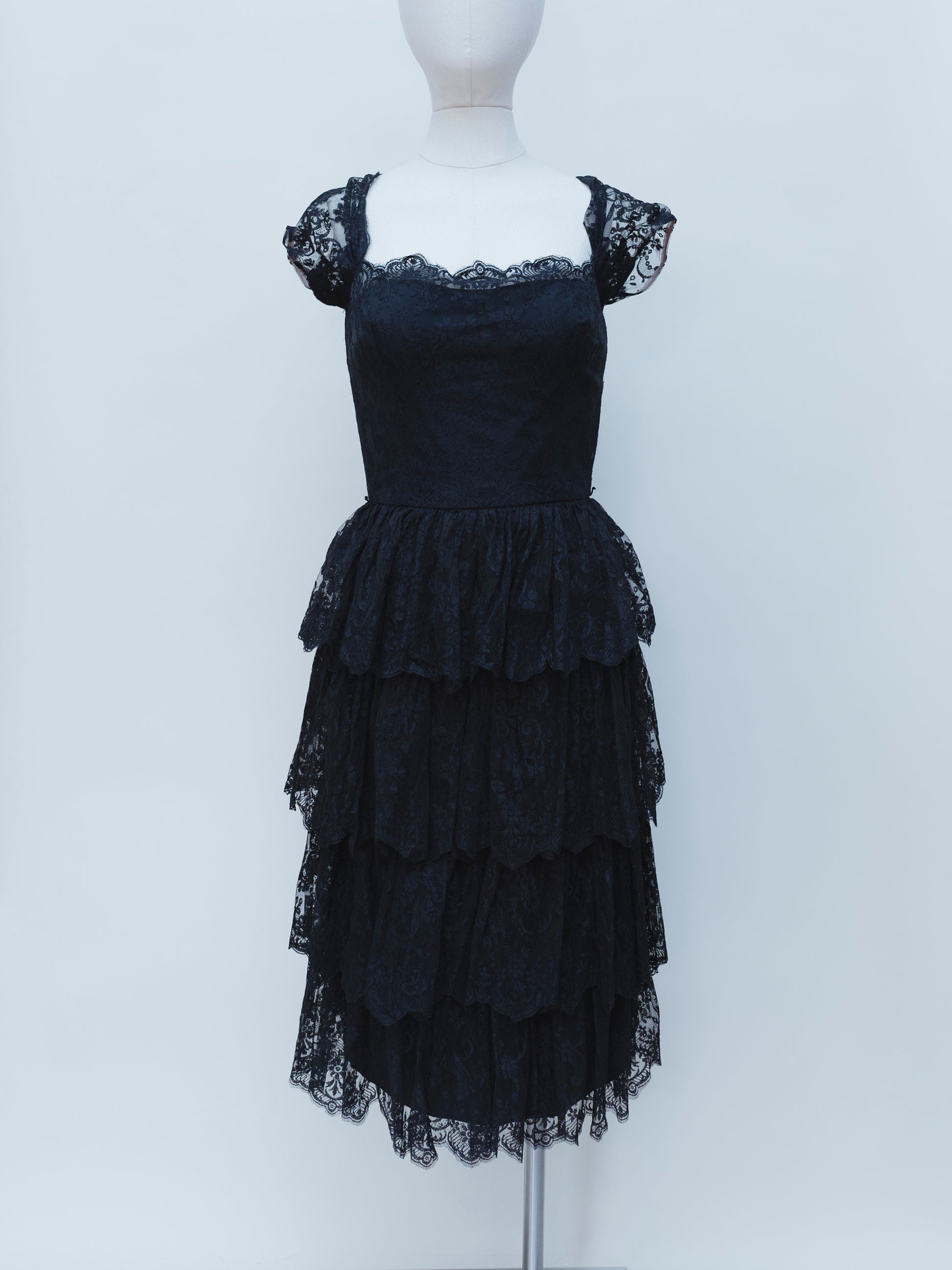 A dress that Marilyn Monroe would have rocked! Gorgeous neckline with layers of beautiful lace on the pencil skirt. Bodice and skirt are lined.