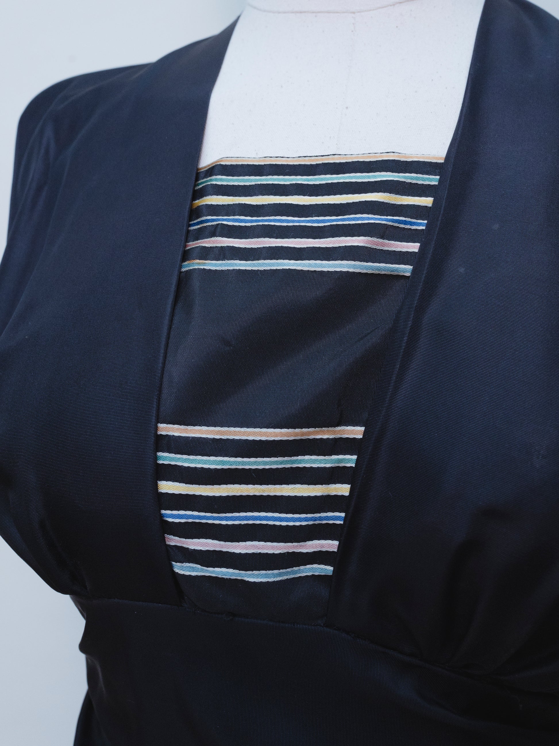 The neckline has stripes that continue through to the skirt, for a nice pop of color.